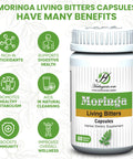 Moringa Living Bitters Capsules combine the nutrient dense power of Moringa oleifera with a traditional blend of bitter herbs in our category of Herbal Capsules known for their deep cleansing and digestive support properties. This unique formulation is designed to nourish the body while promoting natural detoxification, improved digestion, and overall vitality.